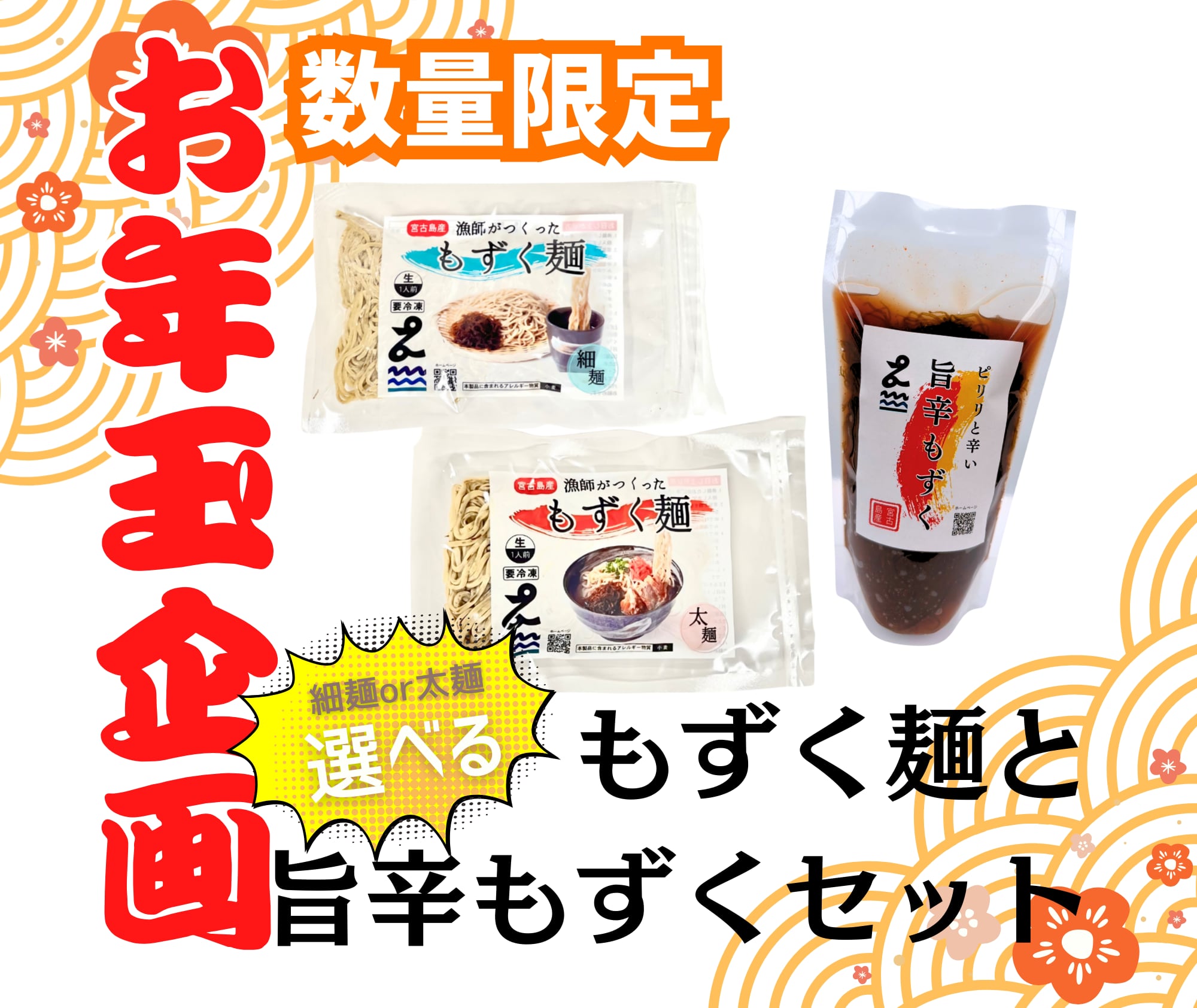 \\お年玉企画//【送料込】宮古島産もずく麺&旨辛もずくセット